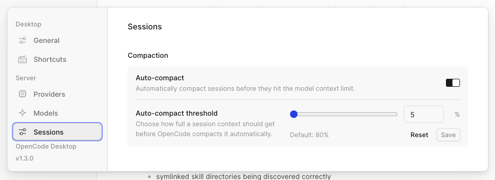 compaction.threshold, triggers threshold-based auto-compaction in the backend after completed assistant turns, dedupes compaction requests while a session is already compacting, and adds aServer -> Sessionssettings surface in the app/Desktop UI.How did you verify your code works?