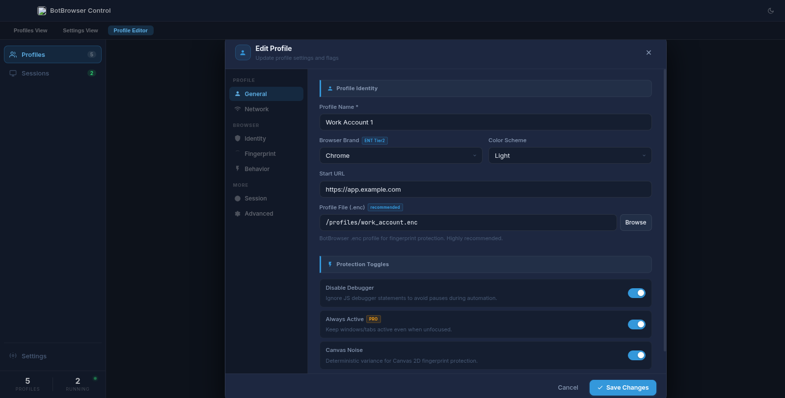 BotBrowser Control — Professional Desktop Profile Manager