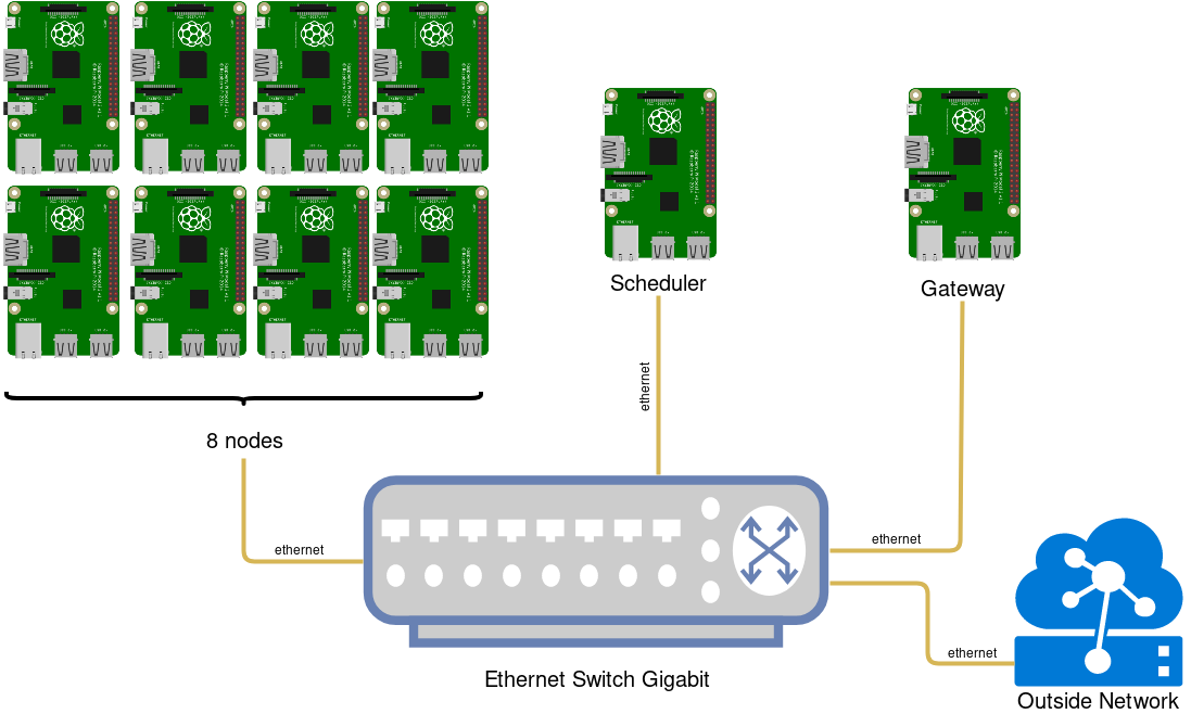 This project aims to reproduce large-scale clusters' structure to a small teaching example using Raspberry Pi (10 of them). To illustratre how the cluster works, we used bruteforce.