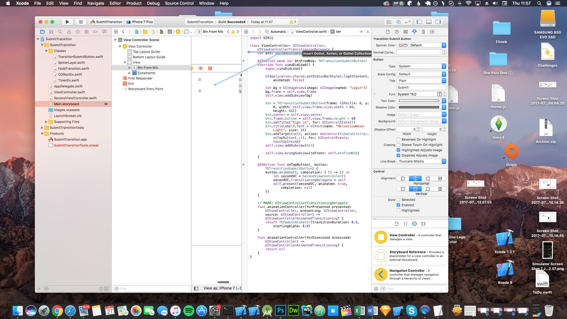 var bin: TKTransitionSubmitButton!then finally in the view did load add the button