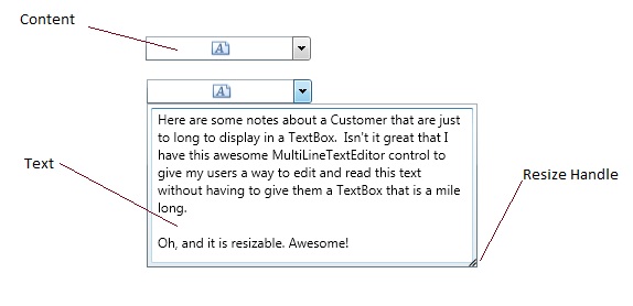 Represents a resizable multi-line text editor that displays in a dropdown.